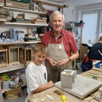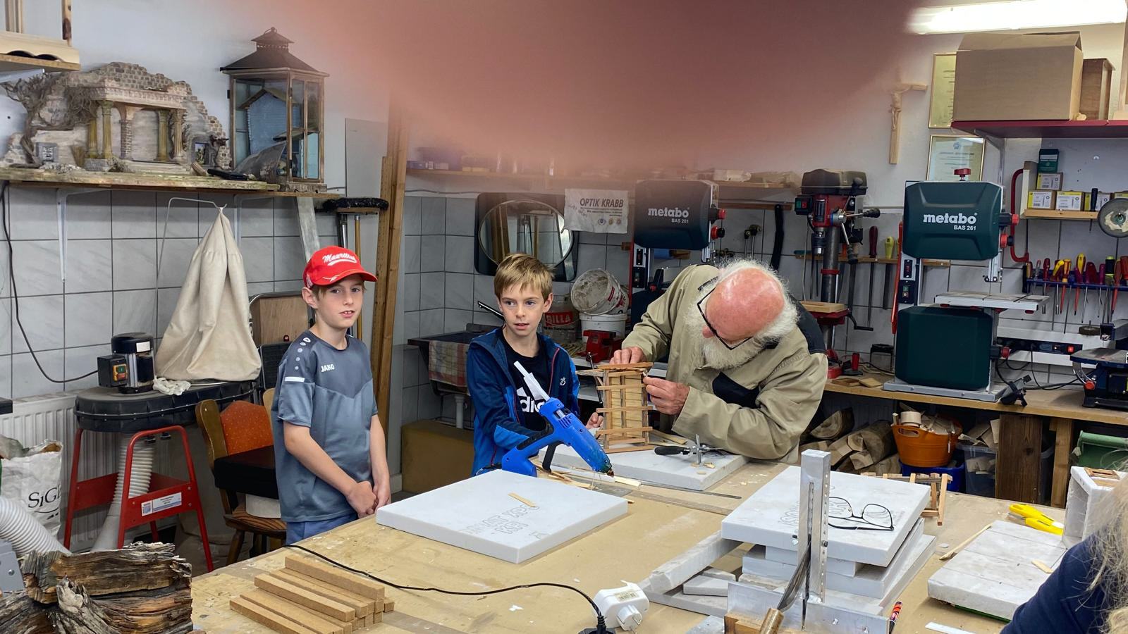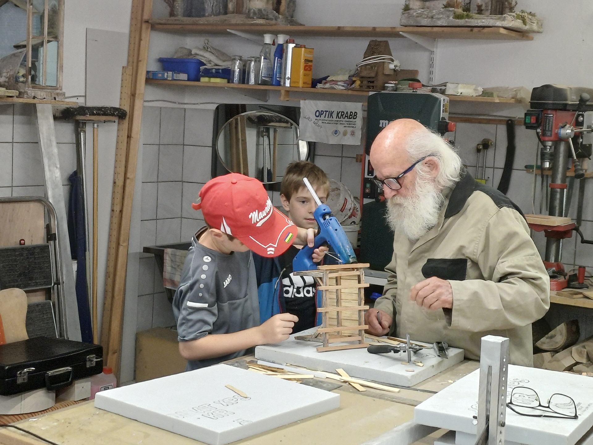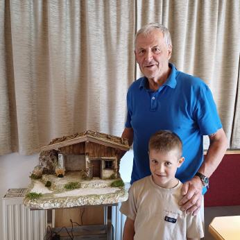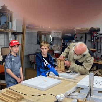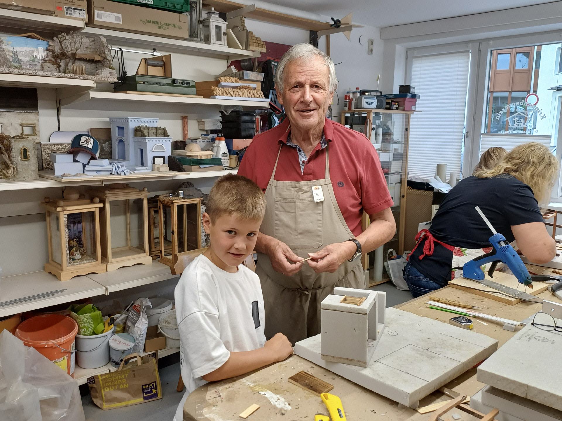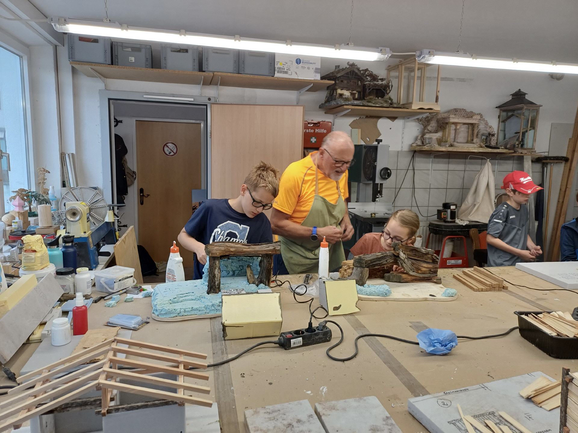 Als wir sechs jugendliche ankamen, wurden wir in der Werkstatt des Krippenbauverein St. Johann /Pg. sehr freundlich empfangen. Einer der Krippenbaulehrer kam gleich auf uns zu und sagte: Dann fange ich doch gleich mit euch beiden an.