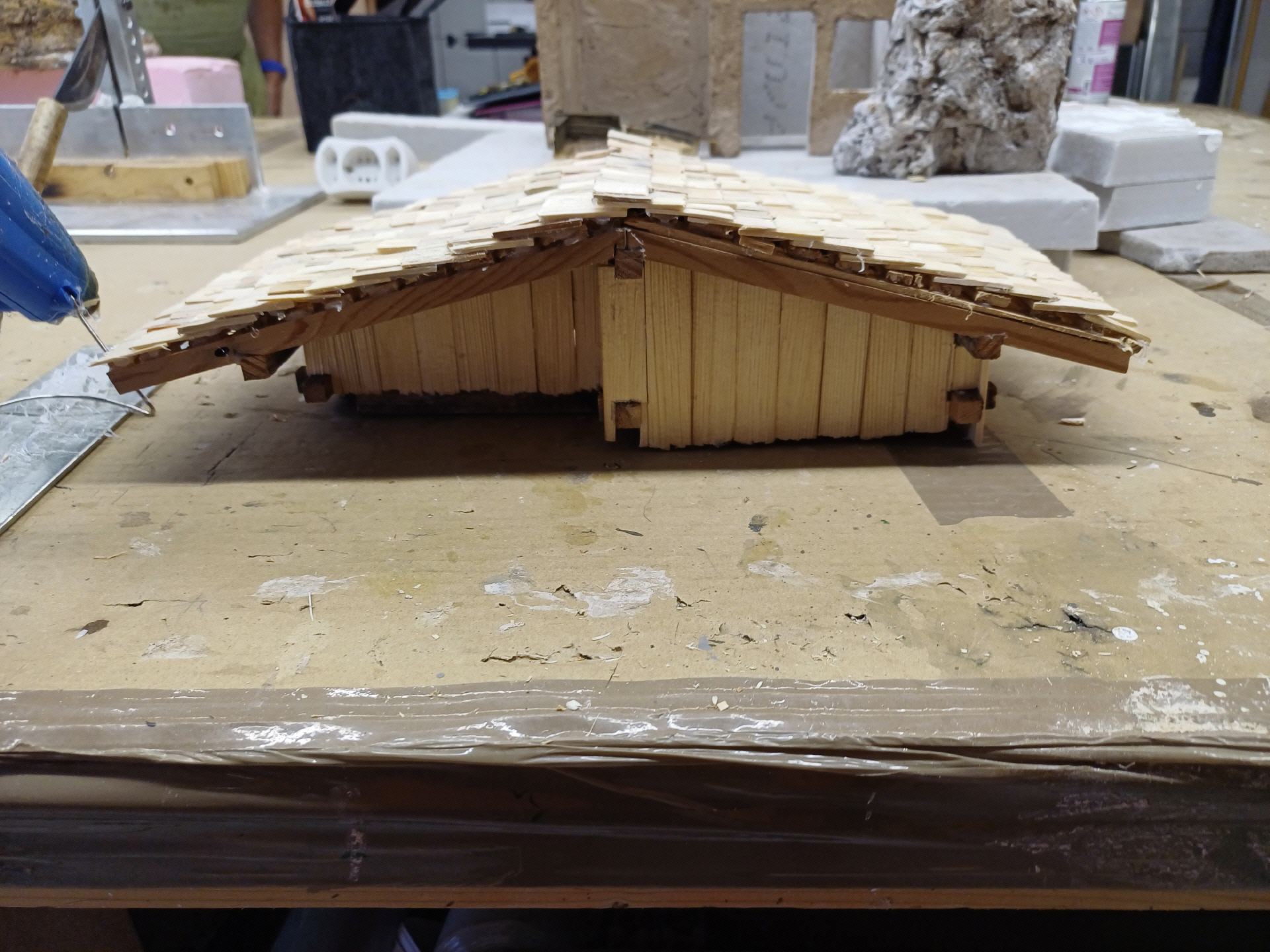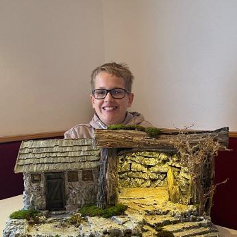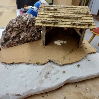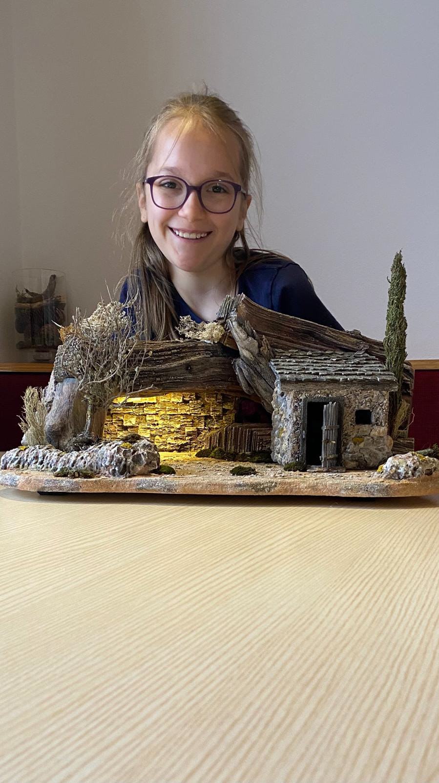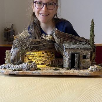 Er führte uns zu zwei vorgefertigten Krippengerüsten. Eine Orientalischen und einer Alpenländischen. Die anderen Jugendlichten machten Alpenländische Krippen. Sogleich fingen wir an, das Haus mit Steinen zu verzieren und die Höhle zu bauen, in der dann die Figuren kamen. Alle Krippen wurden im Maßstab zu den Figuren gebaut (8cm).
